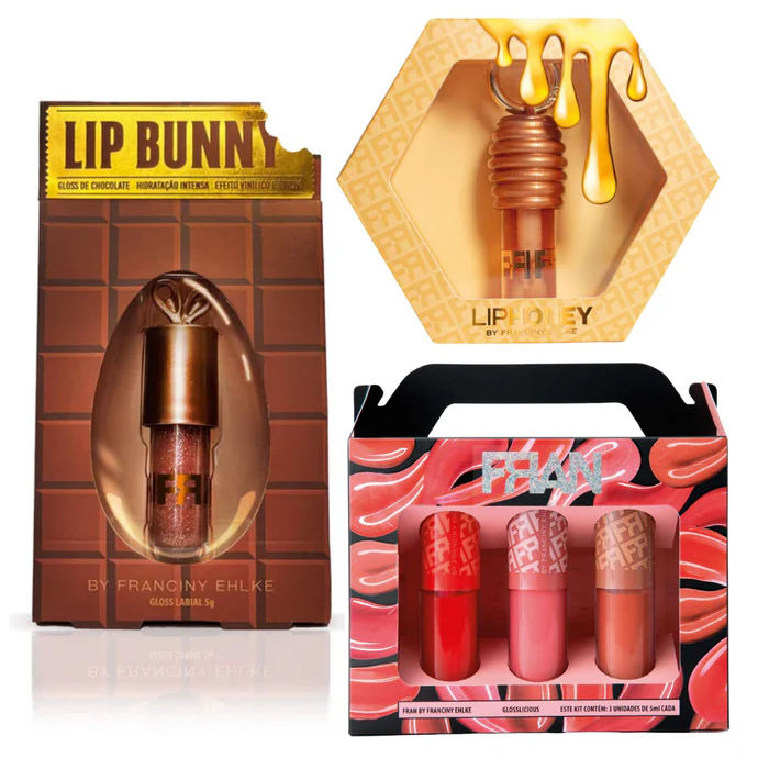 Se você ama lábios radiantes e bem cuidados, esse kit foi feito para você! Com três glosses exclusivos — LipHoney, LipBunny e Glosslicious —, ele combina hidratação intensa, brilho sofisticado e uma experiência sensorial única.
